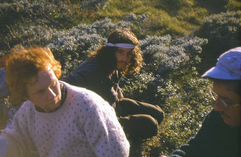 The party regroup at Stordalens Basecamp in the late summer sunshine. Left to right: Dougie Brown, Ray Sharples, John Cant.